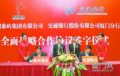 此外,交通銀行將充分發揮國際化、綜合化的優勢,為象嶼集團提供現金管理、投資銀行、供應鏈、信托等“一攬子”金融產品和“一站式”金融服務,全面介入象嶼集團的各項業務。
