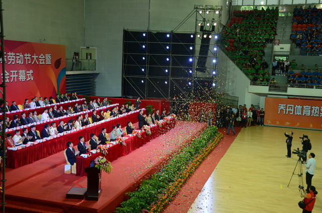 4月27日下午,慶祝“五·一”國際勞動節大會暨廈門市第十屆工人運動會開幕式在市工人體育館隆重舉行,省市領導于偉國、劉可清、洪碧玲、詹滄洲等出席了開幕式。象嶼股份公司組織二十人方陣參加。