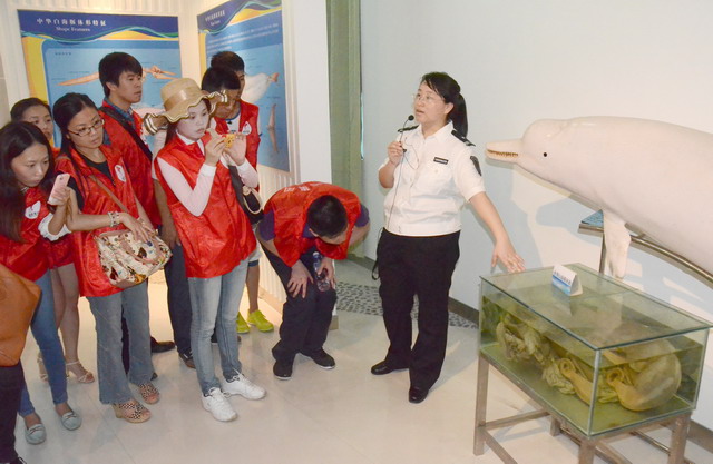 活動中,志愿者們都很激動,紛紛拿出手機和心愛的海豚拍照合影,大家通過喂食和撫觸,與海豚親密互動,真真切切地體會到人與海洋生活和諧共處的那種愉悅和幸福。隨后在科普館內,海洋漁業局的講解員為志愿者們詳細介紹了關于中華白海豚和海洋保護的相關知識,志愿者們認真傾聽,踴躍提問,與講解員展開了熱烈的互動,收獲良多。