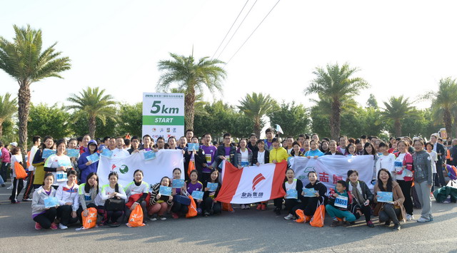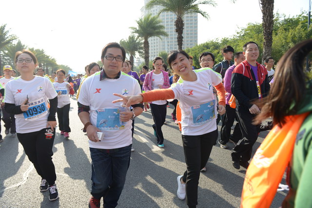 盡管冬日清晨有些凍人,但這絲毫沒有“凍”壞象嶼人的熱情。一進入賽場,大家就摩拳擦掌,躍躍欲試。今年的馬拉松對象嶼跑團而言,有著特殊的意義,這不僅是一場健康跑,更是一場公益跑。此次比賽跑道恰好與火燒嶼隔海相望,由集團捐資建立的中華白海豚救護繁育基地正坐落島上。白海豚的可愛形象也隨之出現在象嶼“跑男”“跑女”的前胸、后背。公益旗幟、白海豚公益宣傳貼紙,紅帆logo,以及我們朝氣蓬勃的象嶼跑團組成了一道“有愛”的風景線。這也吸引了周圍許多馬拉松參賽者的目光,有的參賽者甚至圍上前來詢問是否也能加入其中。于是,象嶼救助白海豚的公益之舉隨著象嶼人的奔跑也一路傳播開來。