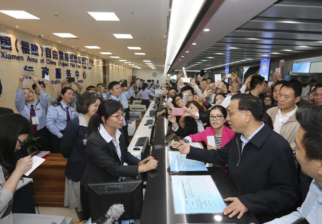 總理來了!由象嶼集團開發運營的兩岸貿易中心火了!李克強4月22日在福建自貿區廈門片區象嶼綜合服務大廳了解簡政放權和商事制度改革等情況。總理說,自貿區不是政策洼地而是改革高地,要大膽闖勇于創。昨天你們掛牌,今天我來為你們助力!