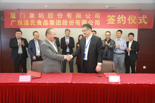 12月27日,廈門象嶼股份有限公司與廣東溫氏食品集團股份有限公司舉行了合作簽約儀式,象嶼股份鄧啟東總經理與溫氏股份何維光副總裁分別代表雙方公司在《戰略合作框架協議》上簽字。此次戰略合作的簽署將進一步鞏固和延伸雙方在農產品產業鏈上的深度合作,實現共贏發展。