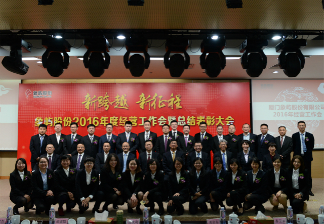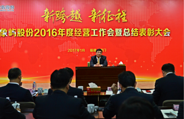 1月16日,象嶼股份2016年度經(jīng)營(yíng)工作會(huì)暨年度總結(jié)表彰大會(huì)在廈門(mén)國(guó)際航運(yùn)中心隆重召開(kāi)。會(huì)議由股份公司鄧啟東總經(jīng)理主持,象嶼集團(tuán)董事長(zhǎng)張水利、副總裁陳方、黨委副書(shū)記邵薀默等領(lǐng)導(dǎo)蒞會(huì),象嶼股份經(jīng)營(yíng)班子、旗下各投資企業(yè)高管及員工代表130余人參加了會(huì)議。