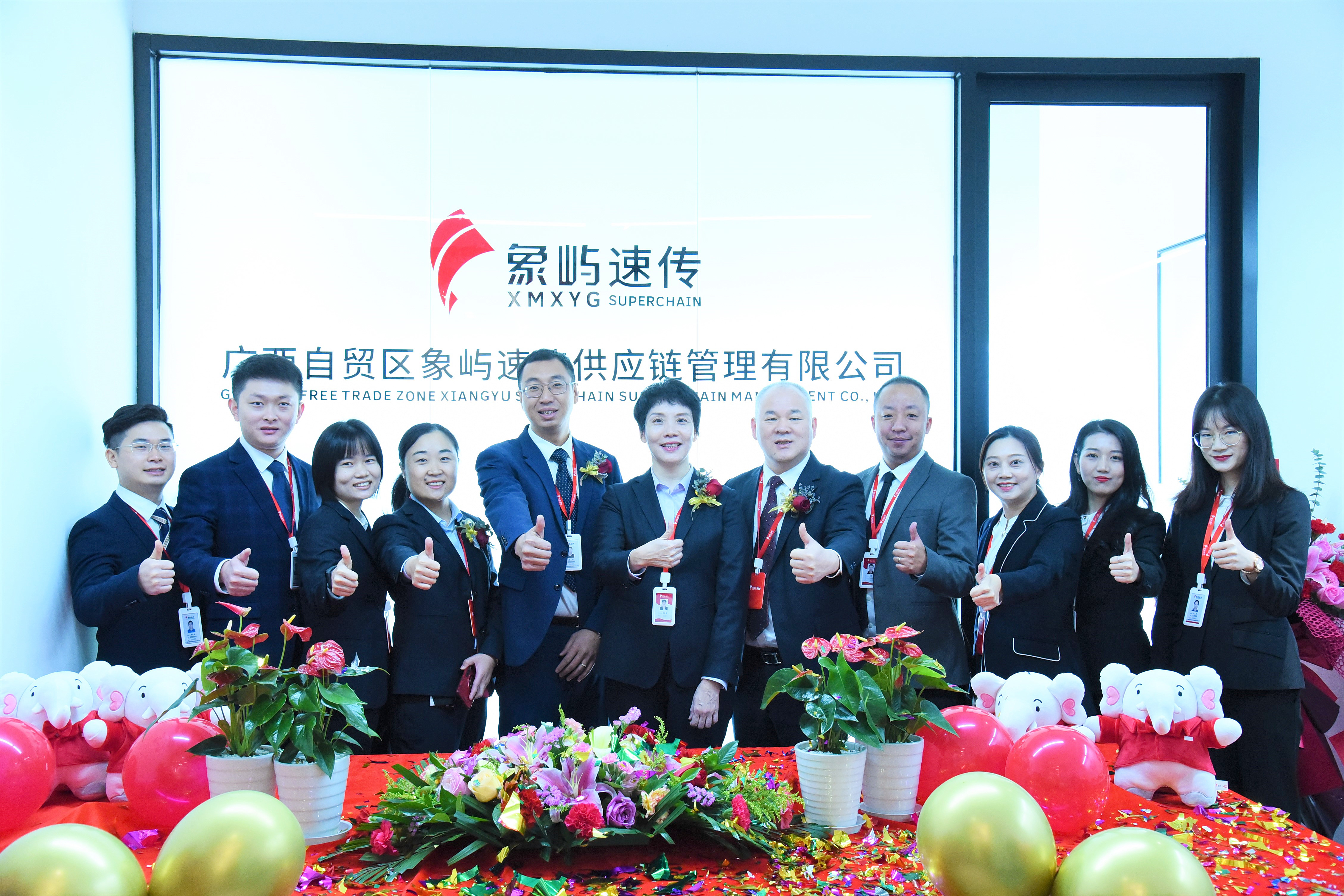 象嶼股份黨委委員、副總經理、象嶼速傳總經理肖靜勤,象嶼股份物流總監、象嶼速傳副總經理孫剛,廣州象嶼、廣州速傳總經理杜靜靜,象嶼速傳西南物流事業部、廣西象嶼速傳副總經理伍韜等為公司揭牌。